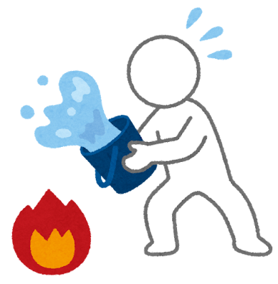 • ・Fully extinguish fires with water and soil before leaving.