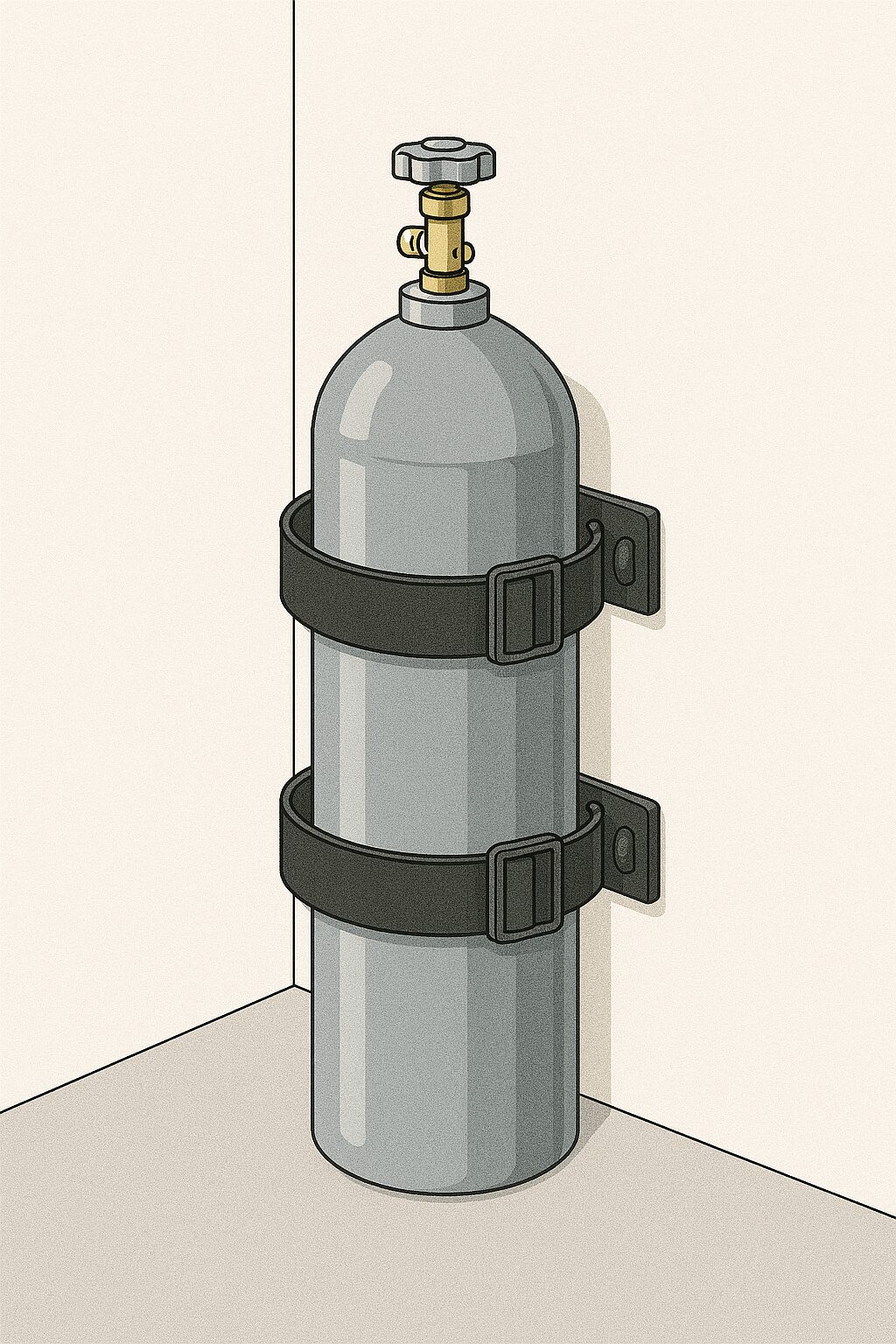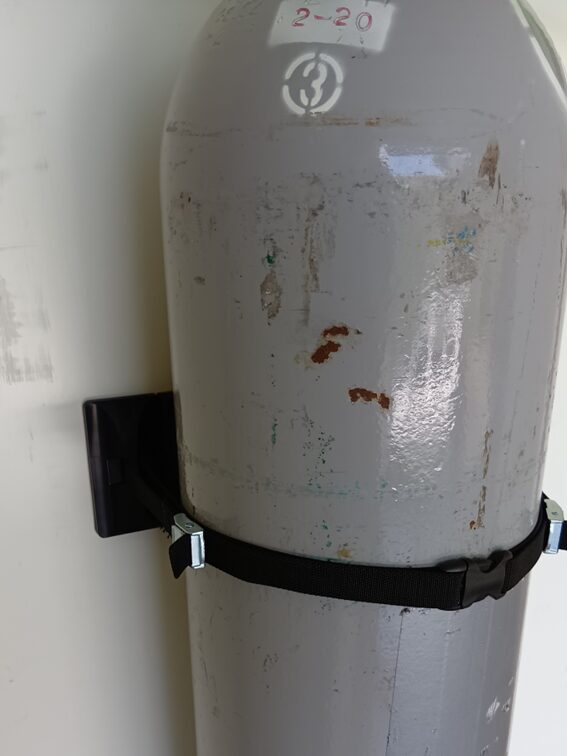 Ideal for cylinders positioned near walls: the cylinder is restrained using a special belt and catch plates with Proseven Gel Pads, helping prevent tipping even without a cylinder stand.