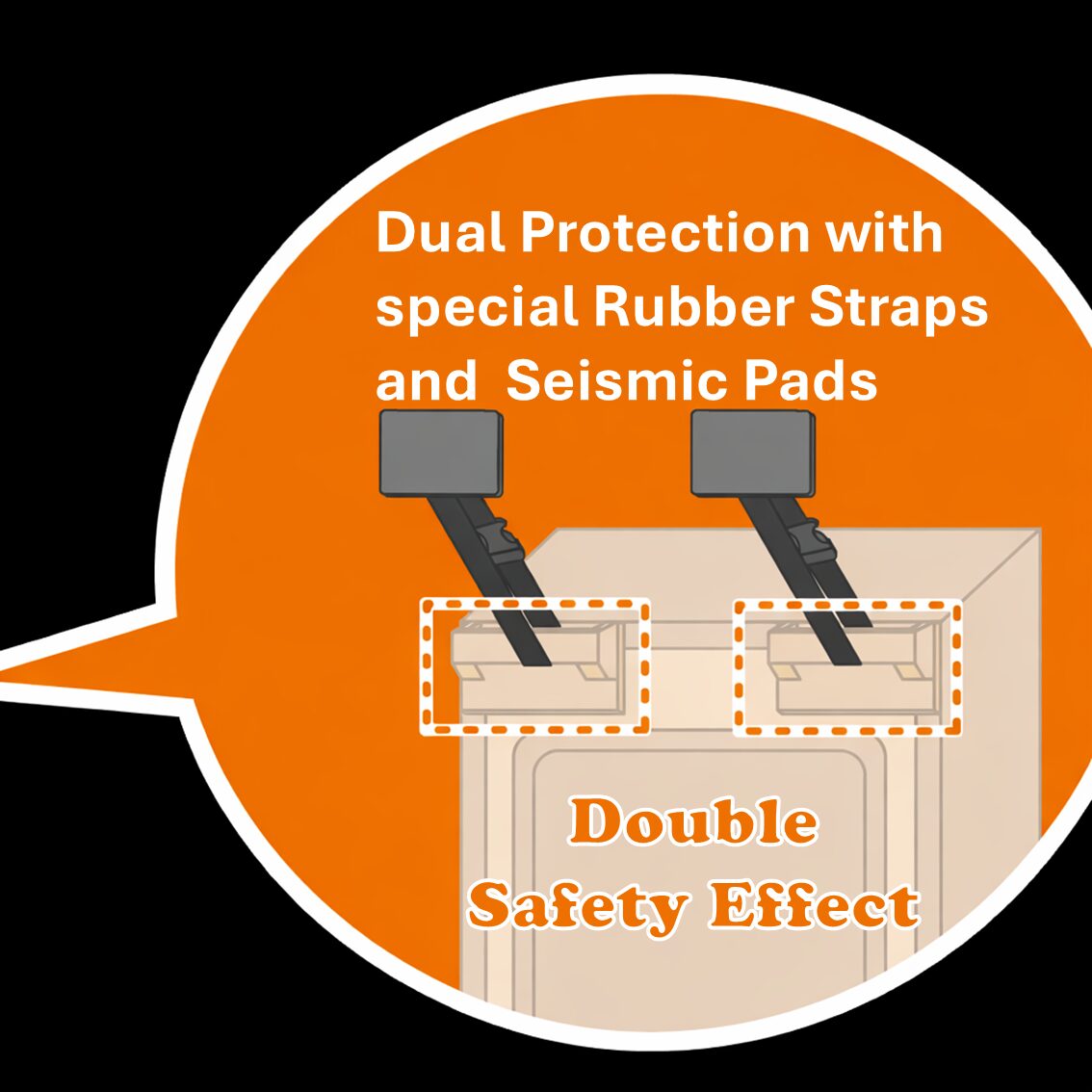 A specially engineered elastic belt absorbs and disperses seismic inertial forces, stabilizing the refrigerator and minimizing sudden movement during shaking.