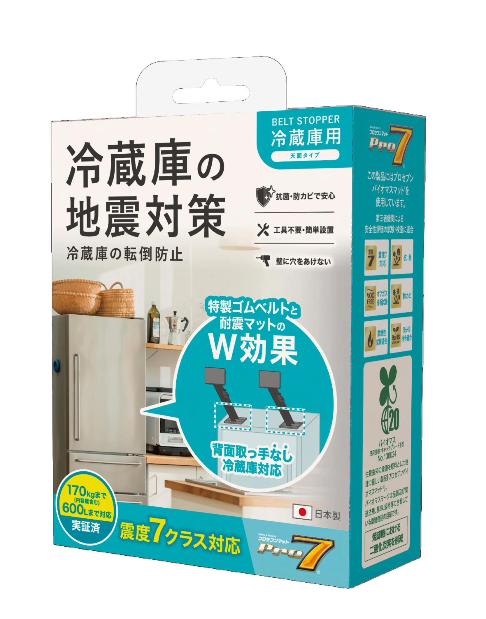 Rigorously tested using seismic simulation replicating an JMA Seismic Intensity Scale 7 quake—equivalent to the Great East Japan Earthquake—proven to prevent fridge tipping.