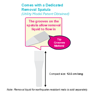 Comes with a patented removal spatula (utility model No. 3250712).