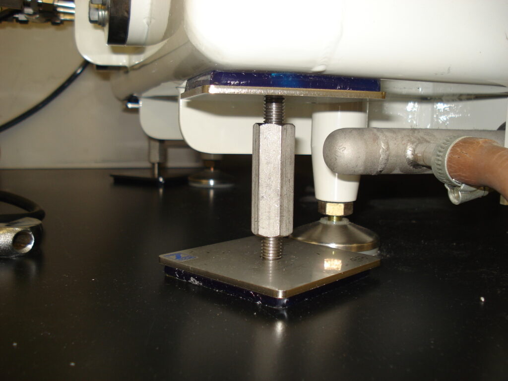 課題:精密測定機器の転倒防止を穴あけなしで実施