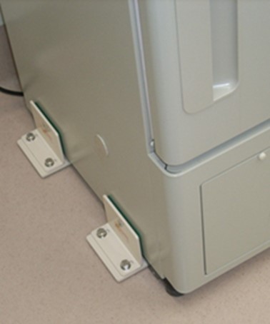 固定方法:床と装置との間隔が狭いため、床と装置の側面を4個の『NSDシリーズ』で耐震固定しました。