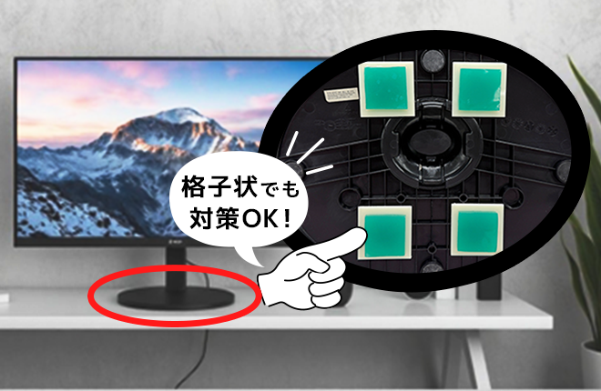 対象物の底面が格子状・凹凸形状・高さ不足などの理由により、耐震マットを十分に活用できない状態を指します。