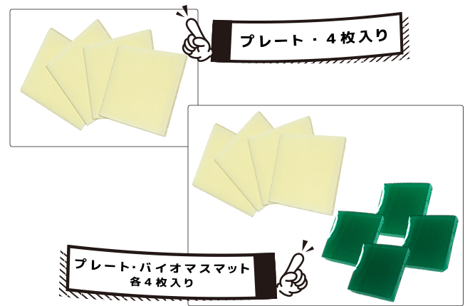 アシストプレート:60x60xt2.8mm 4枚入、バイオマスマット50x50xt5mm 4枚入
