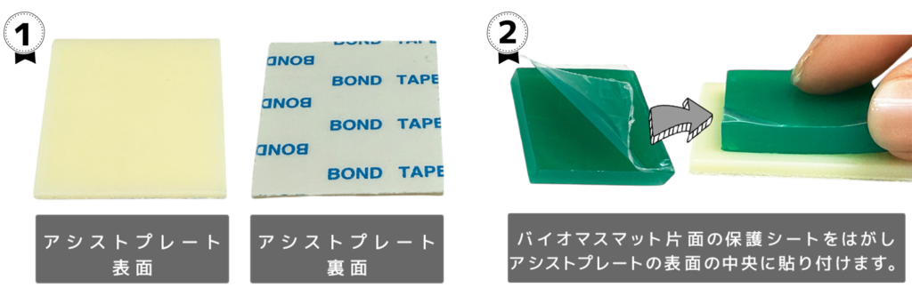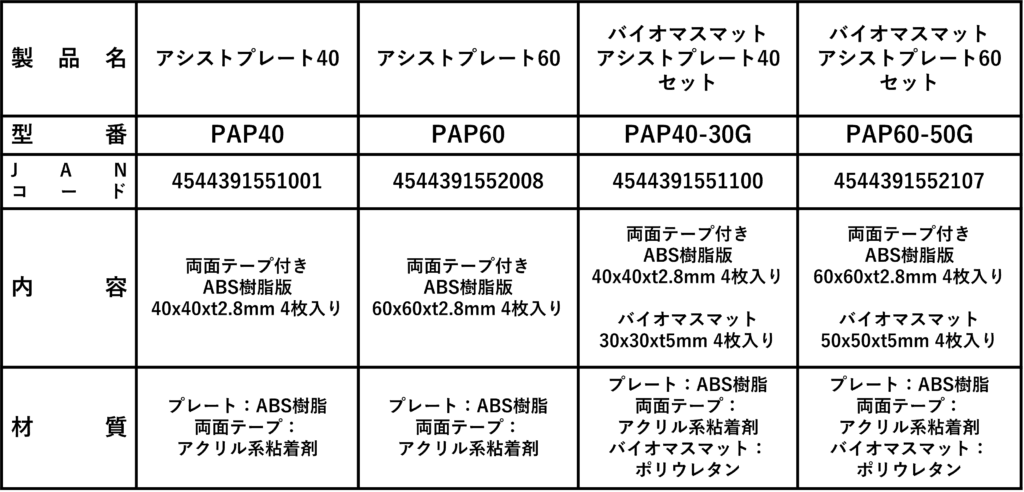 アシストプレートは、片面に高強度両面テープを備えたABS樹脂板です。