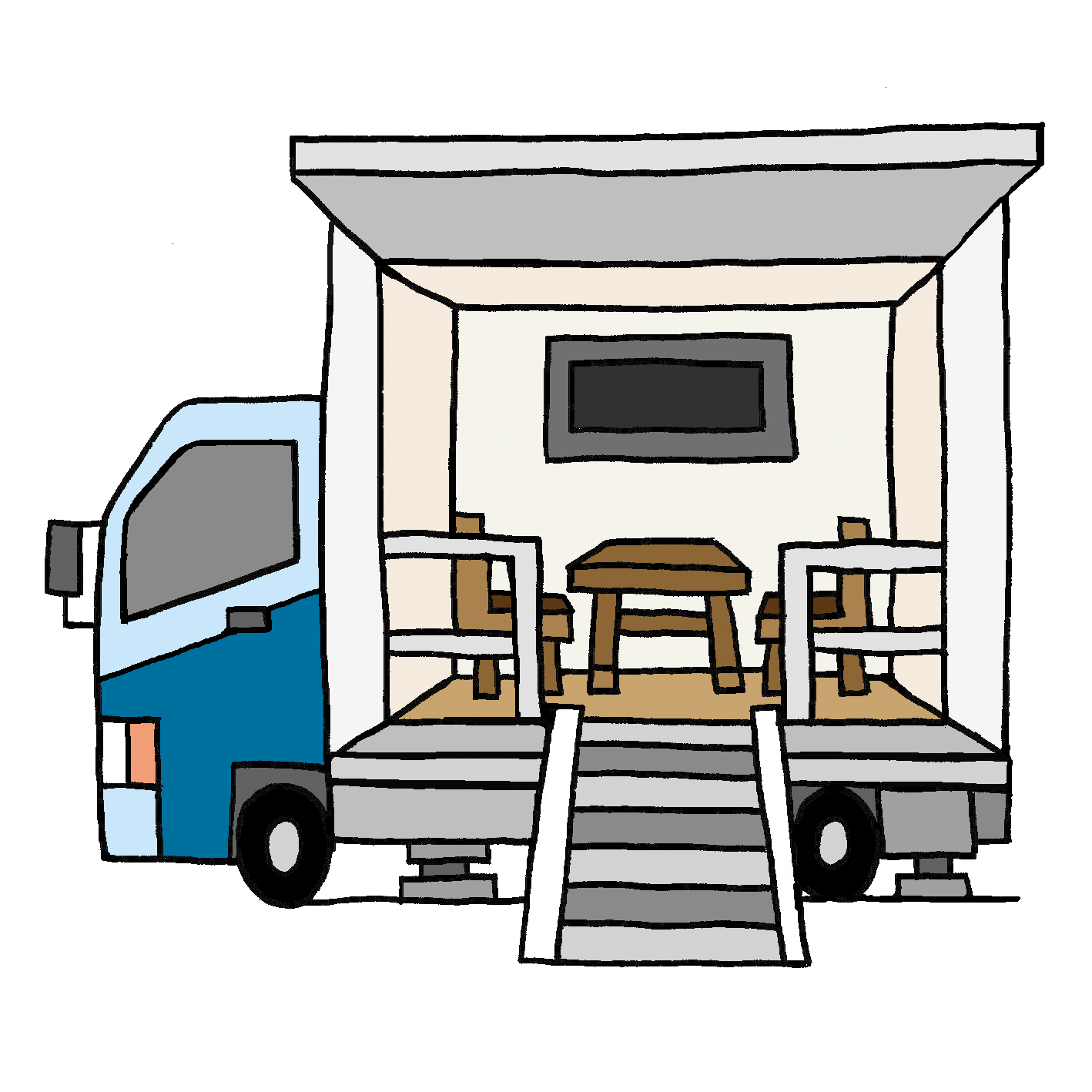 ・椅子やテーブルが固定(乗車4名限定)